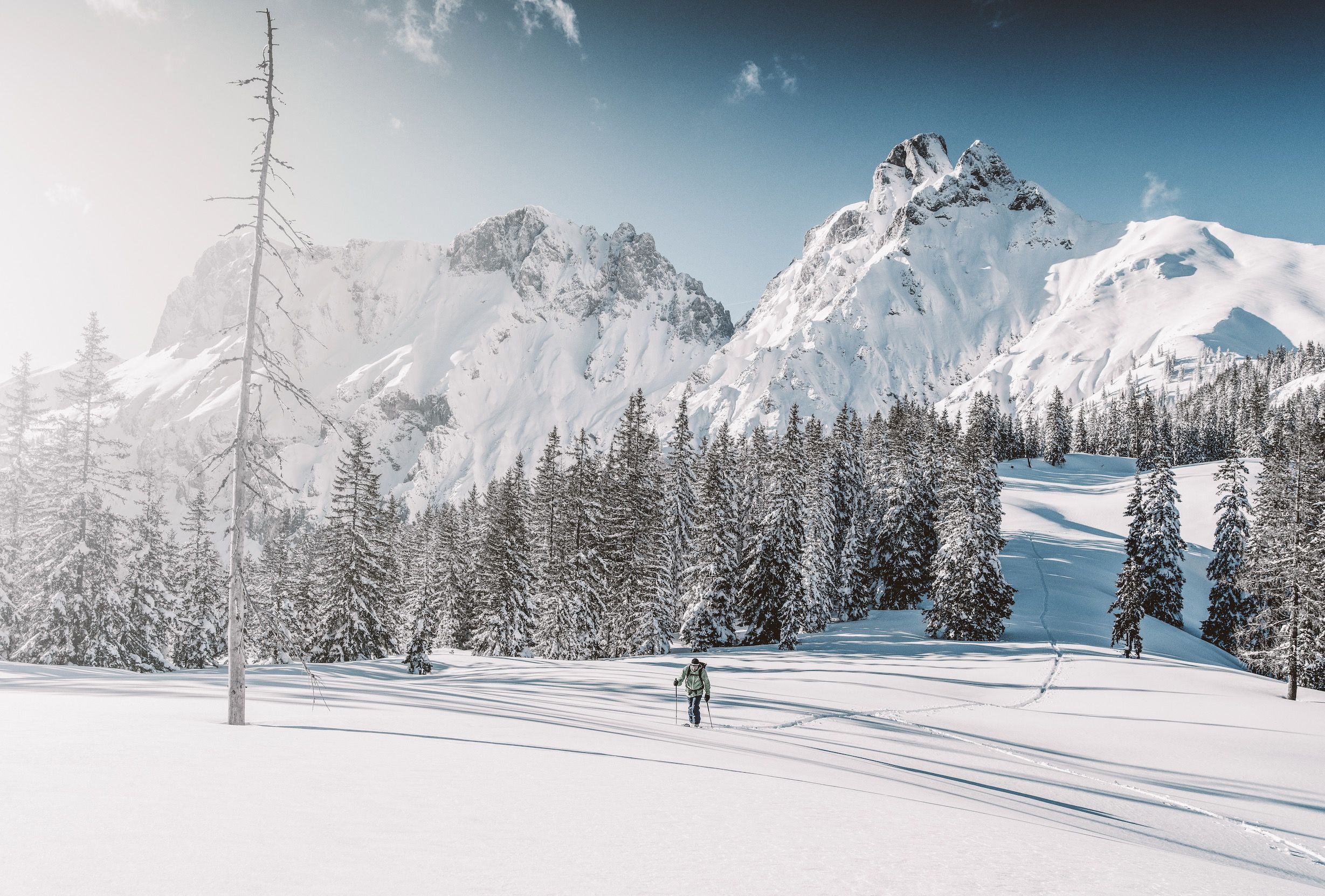 Angezuckerte Bergspitzen und die Möglichkeit für Langlaufen, Skitouren, Schneeschuhwandern, Rodeln und Eislaufen. Ein Eldorado für Wintersportfreunde.